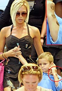 У приемного сына Джоли 6-летнего Мэддокса и у сына Бэкхемов 4-летнего Ромео такая же страсть к боди-арту, как и у их светских мамочек. Но, слава Богу, пока у мальчиков временные татуировки.