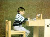 Если вы купили обычный стол с горизонтальной поверхностью, то обязательно купите еще и подставку для учебников, чтобы они располагались под углом в 30-40 градусов к столу. И займитесь подгонкой соотношения высоты стола и сиденья.