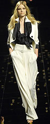 На первый взгляд уж в этом-то варианте нет ничего особо нового и экстремального. Узкие брюки были в фаворе у дизайнеров одежды и прошлой зимой, и минувшим летом. Однако нынче узкие брюки приобрели откровенный оттенок подчеркнутой сексуальности, что связано с активным продвижением силуэта «песочные часы».