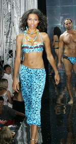 Новая коллекция представила несколько основных трендов. Тема моря не покидает подиумы и по-прежнему актуальна. Дизайнеры от MARC&ANDRE эффектно стилизовали морскую тему, смешав насыщенный цвет волны с блеском золота корабельных якорей. Особое внимание гостей привлекли пронизанные романтикой морских путешествий купальники в сине-белую полоску. Выходящие на подиум девушки несли в руках раковины, из которых серебристым дождем струились стеклянные стразы. Гвоздь сезона – полузакрытый, купальник, который идеально облегает фигуру, придавая образу неуловимое очарование.