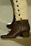 Стилистического разнобоя при этом практически нет. Все довольно умеренно и традиционно. Разве что появляются (например, у Fendi) агрессивные модели в стиле панк-рок из черной кожи с металлическими заклепками и даже шипами. Но это скорее исключение.