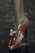 Furla использует для обуви кожу под крокодила совершенно неестественной окраски – светлую жемчужно-серую с жемчужными же переливами, а Chanel добавляет к этой палитре еще и металлизированное покрытие под старинное серебро и бронзу.