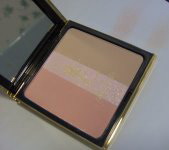 "Предназначенные для волшебного сияния, три осветлителя кожи деликатных оттенков. Пудра, румяна и маркер в одном, это талантливое трио света, цвета и матовости.