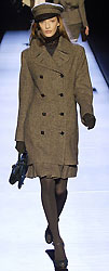Базовыми цветами здесь можно считать серый и черный, однако несомненной новинкой является пальто-тренч из твида неожиданного цвета «кэмел» (темная охра), которое вносит приятное разнообразие в коллекции от Sportmax, HERMЕS, Paul Smith.