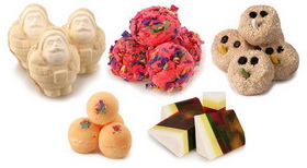 Средства линии Charming Christmas также получили интересные названия и ароматы: Christmas Cake Slice (Ломтик рождественского пирога), Angel Delight Soap (Ангельское наслаждение), Snowcake Soap (Снежный торт).