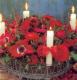 Вам потребуется: кольцо из флористической губки диаметром 25 см; проволочная корзина с подсвечниками; 10 веточек розмарина; 10 небольших веточек лиственницы, покрытых лишайником; 10 веточек остролиста; ножницы; 10 красных анемон сорта «Мона Лиза»; 10 красных купальниц; бумажная лента; 4 свечи