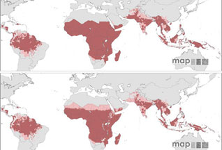 Ученые из США, Великобритании и Кении опубликовали карту распространения наиболее опасного возбудителя малярии Plasmodium falciparum. Исследование выполнено в рамках проекта "Атлас малярии", задачей которого является обновление устаревшей карты распространения опасного инфекционного заболевания во всем мире. Участники исследования свели воедино более 4200 сообщений о числе больных малярией в различных странах в период с 2002 по 2006 год. Кроме того, они проанализировали данные о плотности населения, миграционных процессах и климатических условиях, влияющих на продолжительность жизни комаров-разносчиков инфекции. Читать весь текст